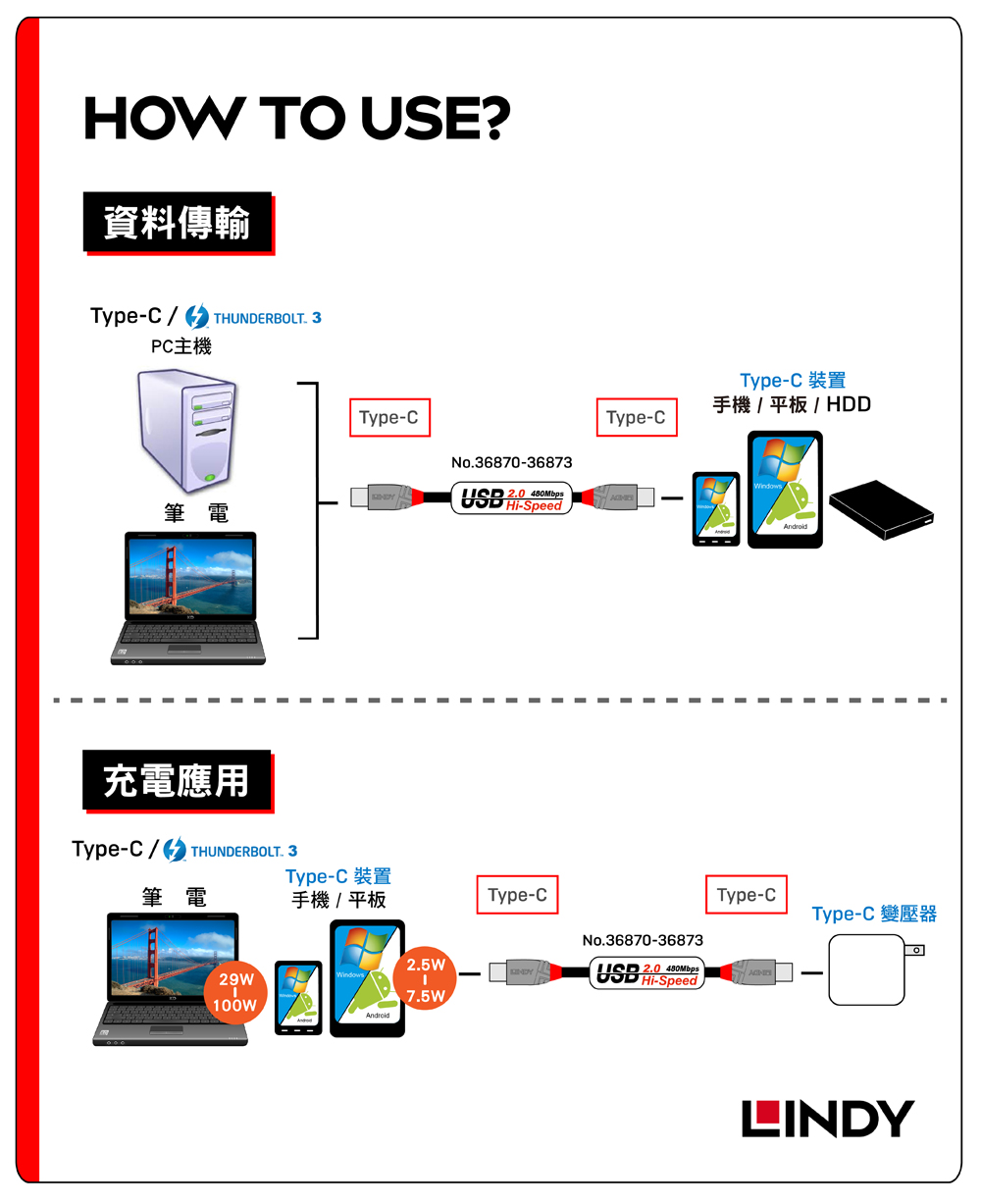 • 林帝 USB 2.0 TYPE-C 公:公 傳輸線-1M