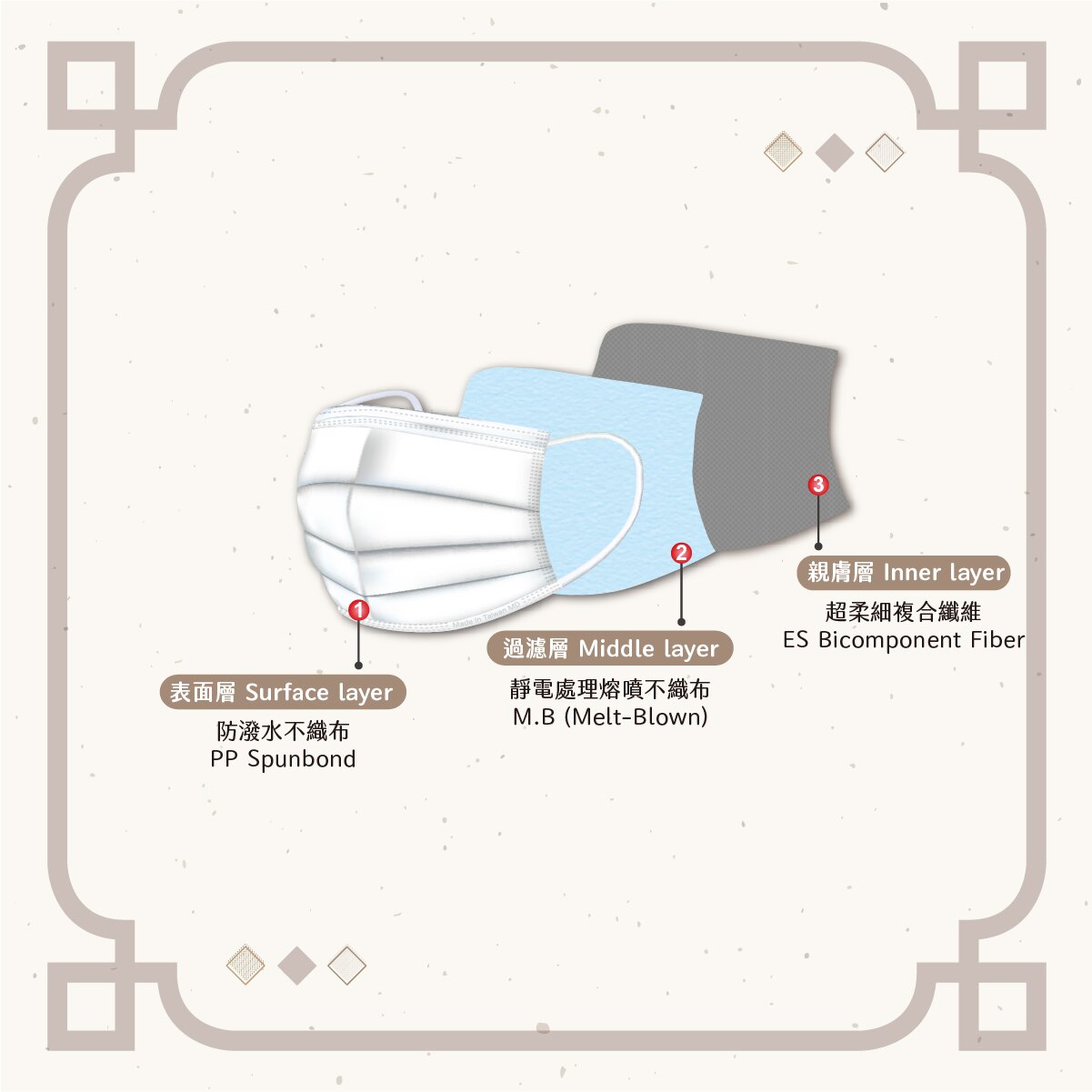 材質:防潑水不織布、熔噴布、親膚層不織布
